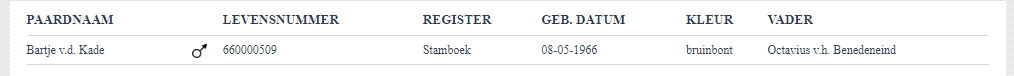 Bartje v.d. Kade was een hengst die (bijna) homozygoot voor merries was…